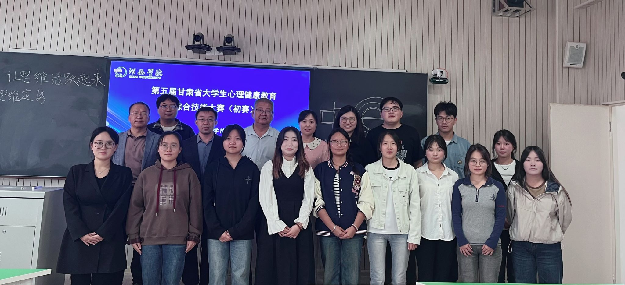 为贯彻落实《教育部关于加快建设高水平本科教育 全面提高人才培养能力意见》(教高〔2018〕2 号),《甘肃省教育厅关于公布 2025年省级大学生学科专业竞赛项目的通知》精神,切实推进高水平人才培养体系建设,提高人才培养质量,普及心理学科学文化知识,并引导学生积极参与专业实践,提高问题解决能力,助力国家社会心理服务体系建设。2025年9月20日,心理学教研室在实训楼411组织并开展了第五届甘肃省甘肃省大学生心理健康教育综合技能大赛校级选拔赛。比赛邀请雒焕国教授、段宝军教授、安桂花教授、任亮宝教授、王琴超博士担任评委,教学组比赛的同学围绕学习适应、压力管理和情绪调节以及自我认知等方面,以学生为主题,通过讨论、游戏等形式展开;咨询组的同学们运用咨询的方法与技巧,模拟了咨询过程。赛后各位评委老师结合自身及指导学生参赛的经验,围绕讲课、说课、咨询展示、个人形象及注意事项等方面进行了指导。通过初赛,最终选拔出12名选手参加省级复赛。